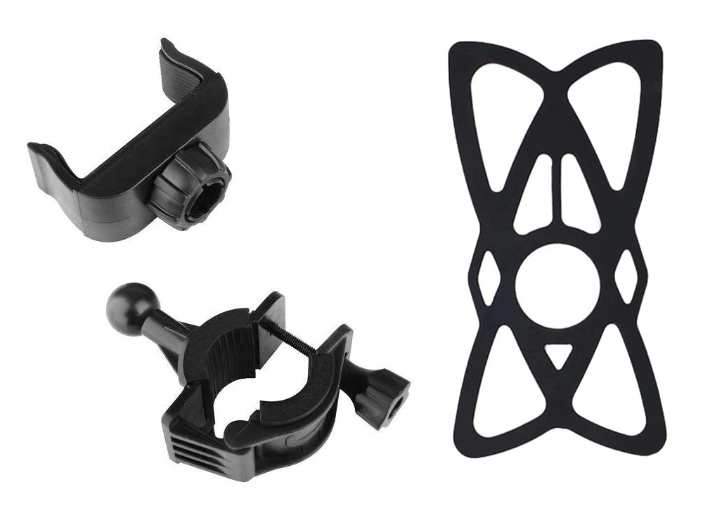Jalgratta või mootorratta telefonihoidik koos kinnitusega mis on valmistatud alumiiniumist ja silikoonist.
