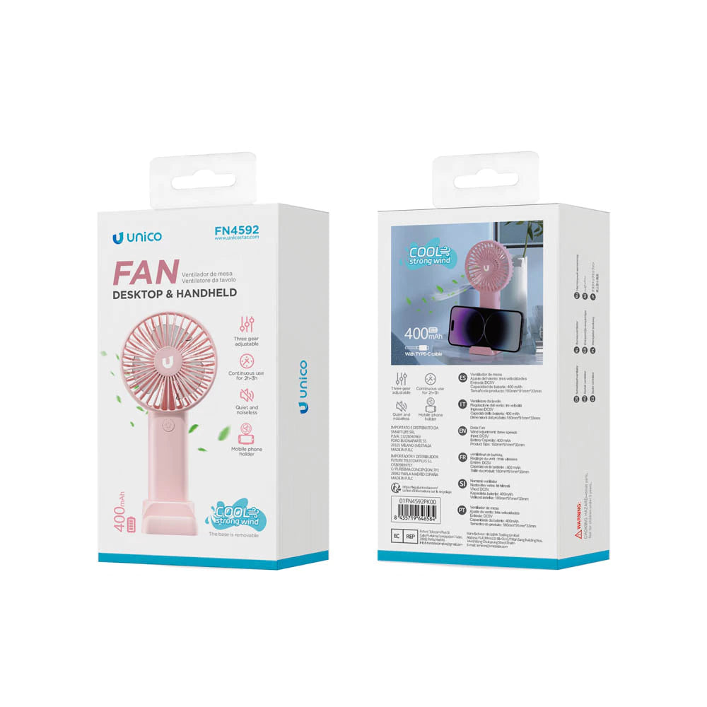 Ventilaatori ergonoomiline disain tagab mugava käepideme ning alus kindlustab stabiilsuse lauapinnal, võimaldades hoida oma nutitelefoni ventilaatori küljes.